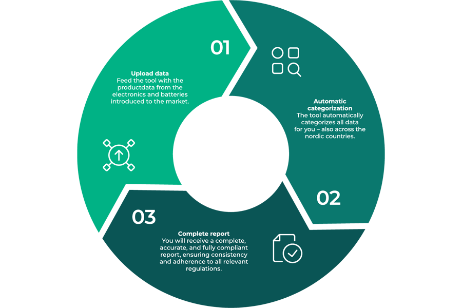 Registrer dig hos os hos Recipo og registrer din virksomhed hos den svenske miljøstyrelse eller den ansvarlige myndighed. Så indberet dit salg til os i vores rapporteringsportal, så klarer vi resten.