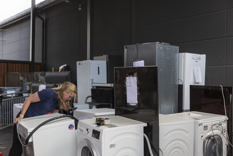 Kølemidlet i køleapparater kan indeholde miljøskadelige freoner. Derfor tømmes kølemidlet i et lukket system, så der ikke er risiko for, at farlige stoffer lækker.